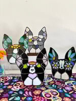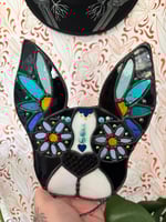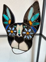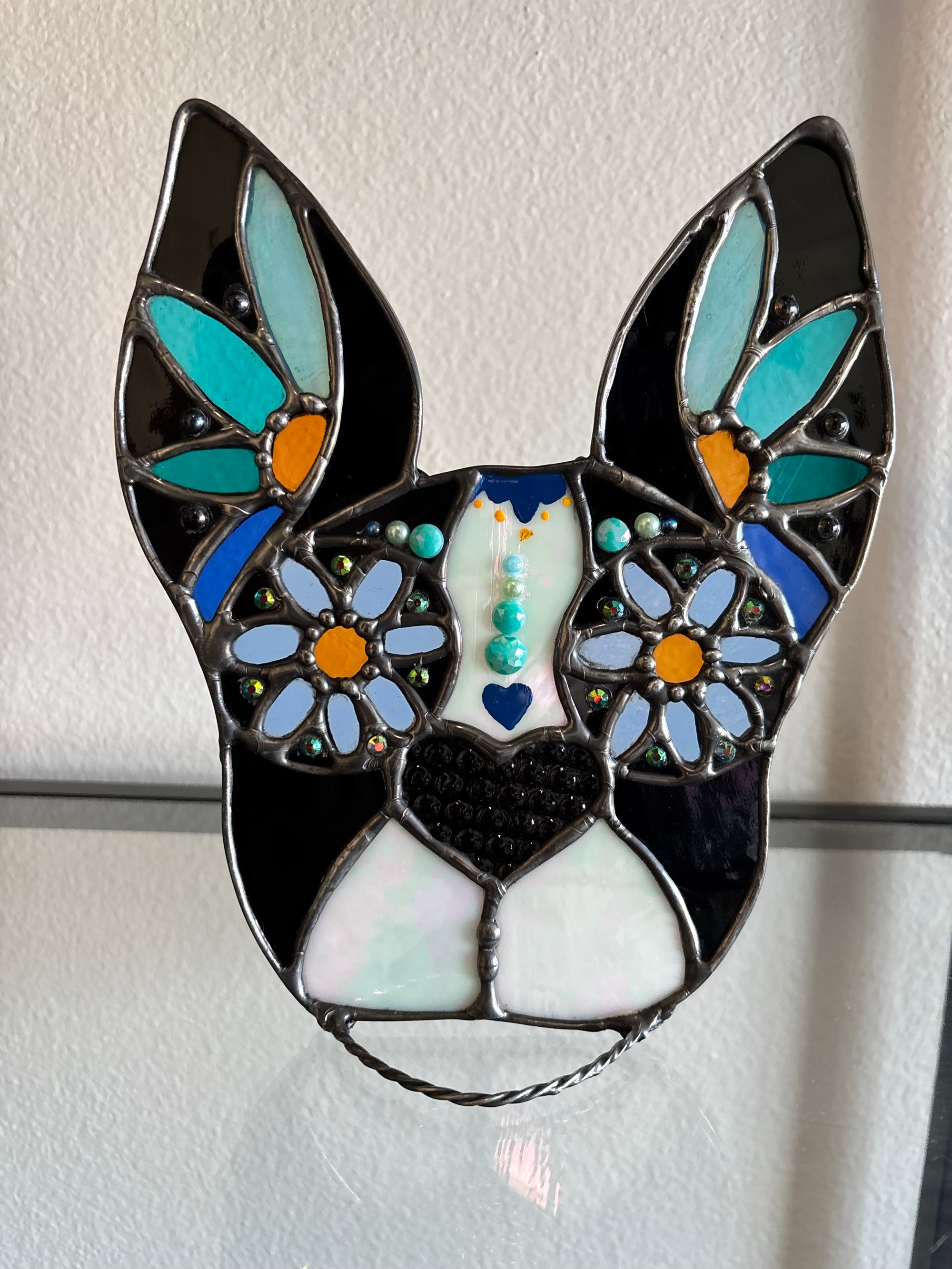 Various shades of blue and iridescent glass. Glass is vintage and has imperfections from the manufacture they may appear as cracks but they are not